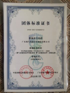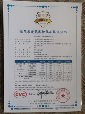 燃?xì)獠膳療崴疇t優(yōu)品認(rèn)證證書